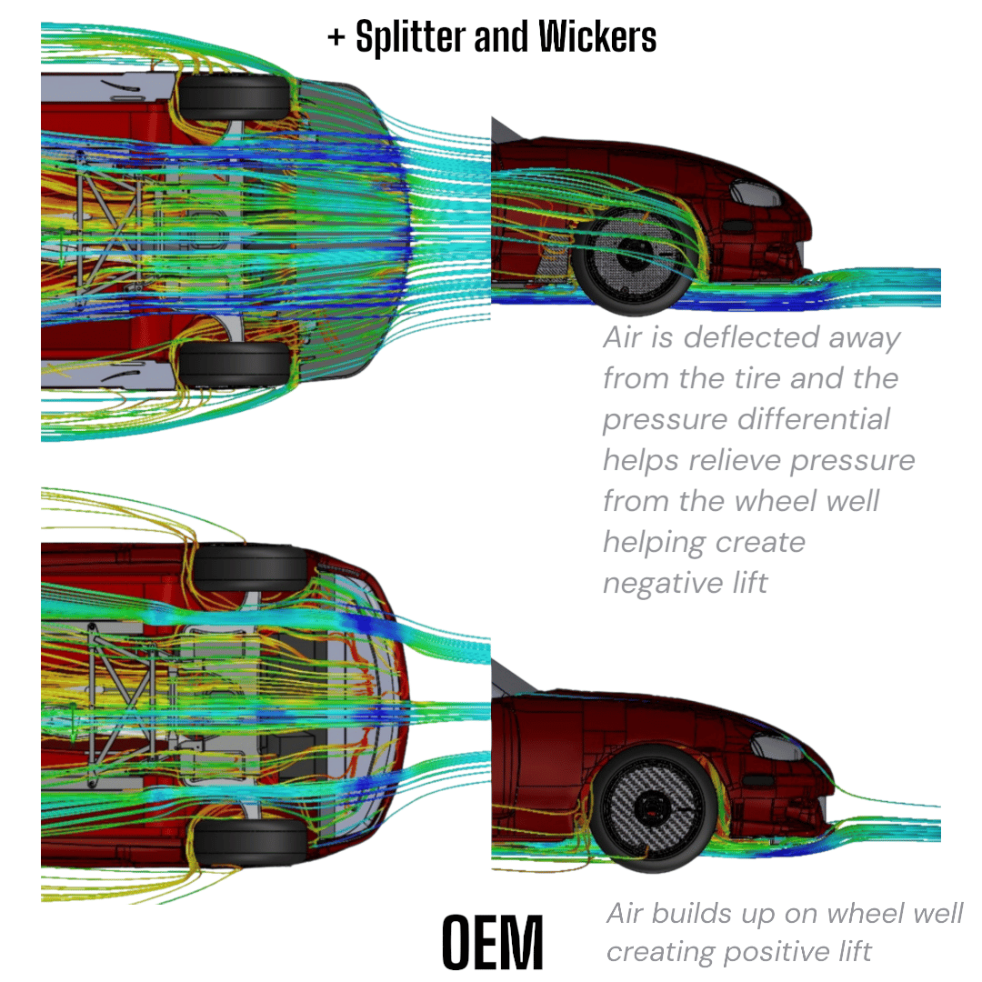 Here is a very informative video made by our friends at Flyin' Miata talking about our Splitters and Spats: https://www.youtube.com/watch?v=z_c3ELaKcDM&t=21s